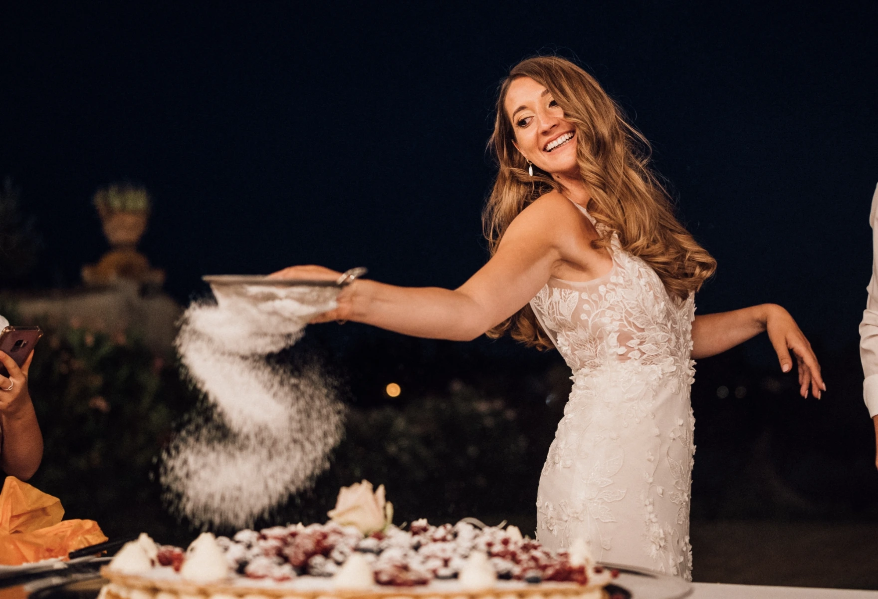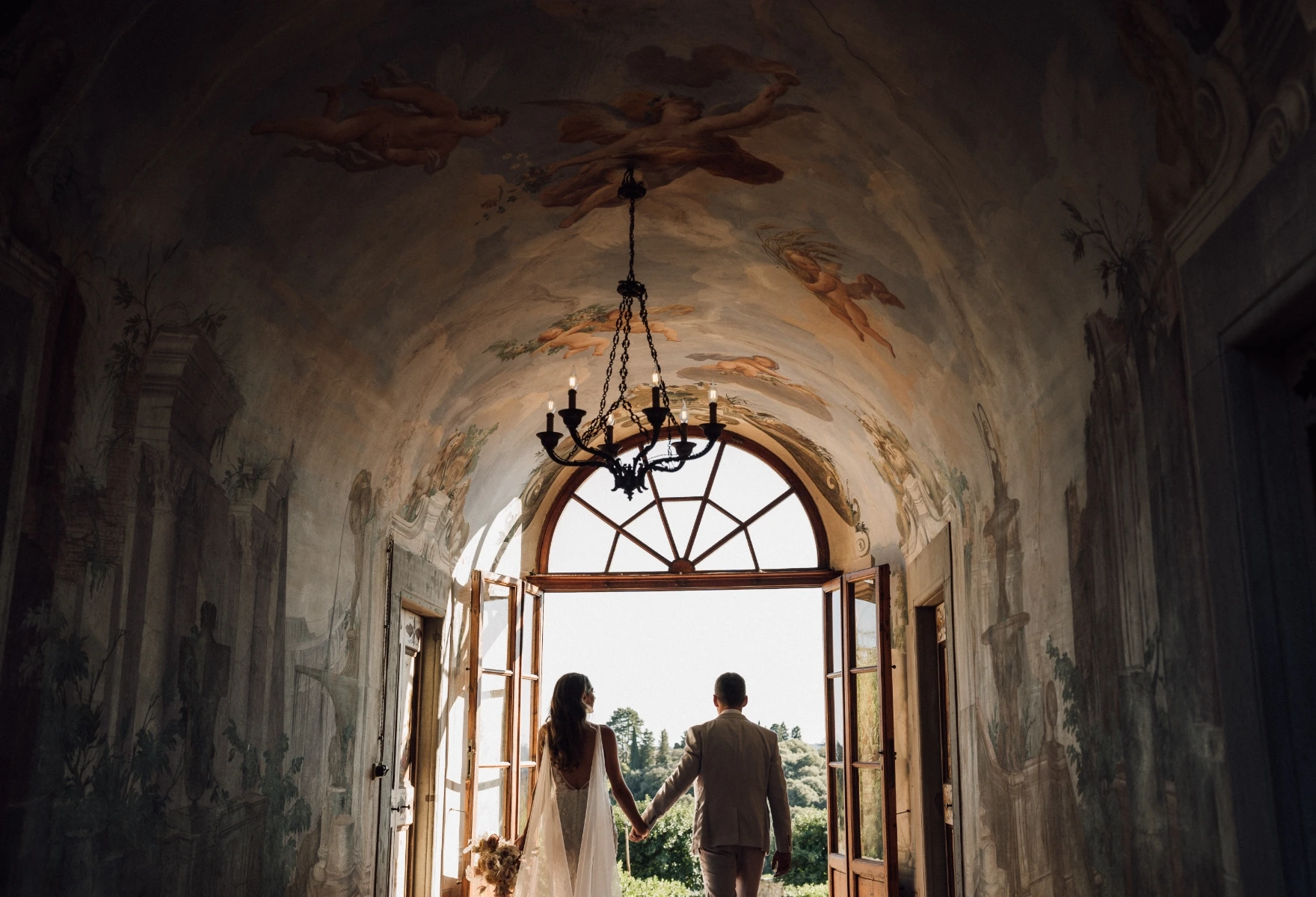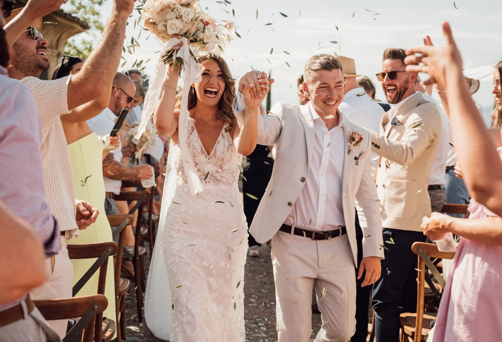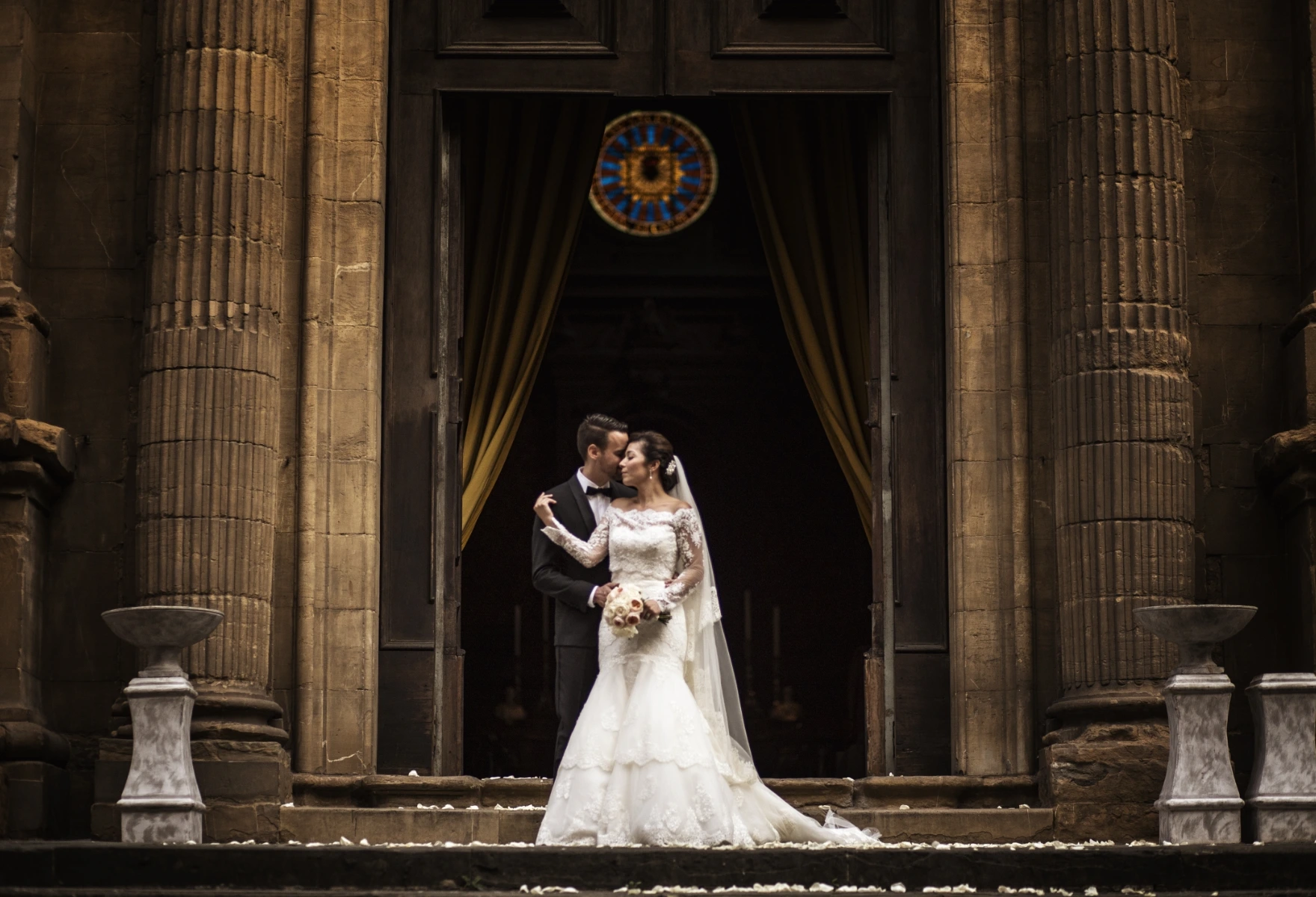 Instead for the wedding day they chose a villa in the hills. A vibrant floral palette reflected their spirit: informal elegance, full of joy. Guests enjoyed a tasteful dinner on the terrace, then a wild party in the villa’s grand hall, and… as true party animals, they topped it all off with an after party at Piazzale Michelangelo.
